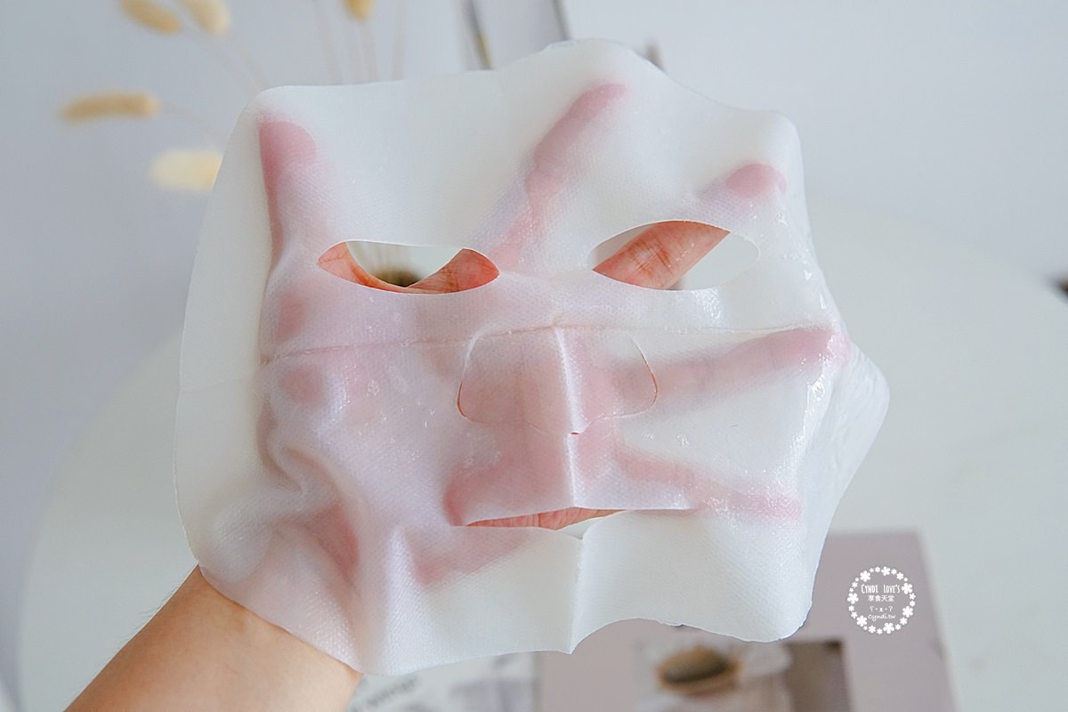 等待約15-20分鐘過後就可以取下面膜,再將臉部的精華液輕拍至完全吸收,在拍的過程當中就會很明顯感受到臉部肌膚的水嫩感,就彷彿肌膚補水般,保水又保濕。