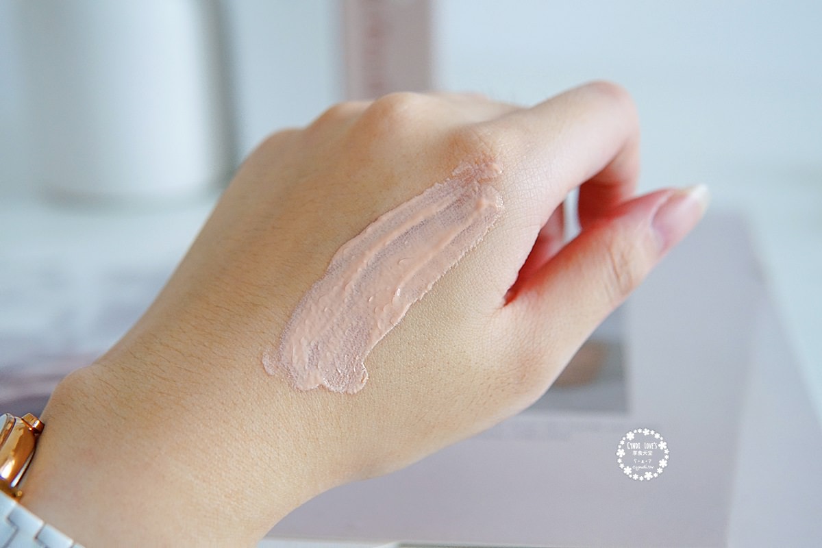 蕾舒翠 鑽彩防護隔離霜,顏色呈現粉橘色調,可以修飾膚色外,也不用擔心擦起來太死白的問題,呈現自然膚色,質地蠻水嫩的,所以還蠻容易均勻好推開,一整天使用下來其實還蠻清爽的,不會讓人覺得油光,夏日使用真的很合適,防曬隔離外又有粧感好氣色。